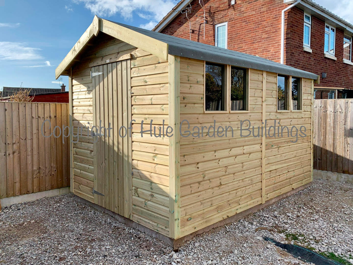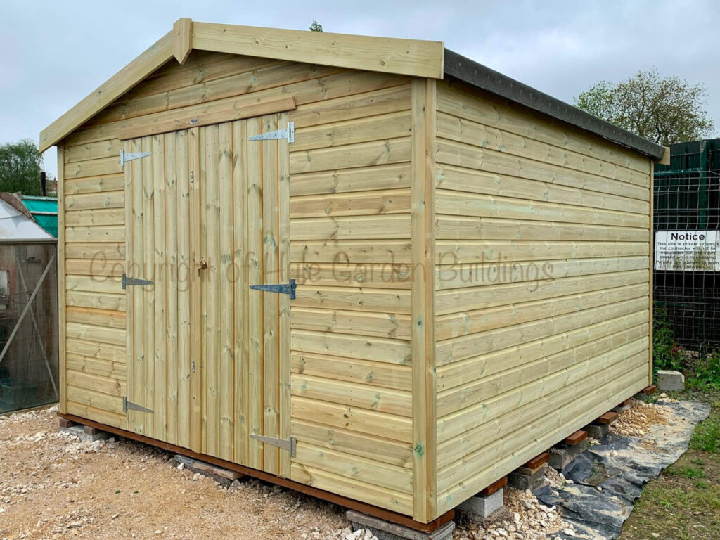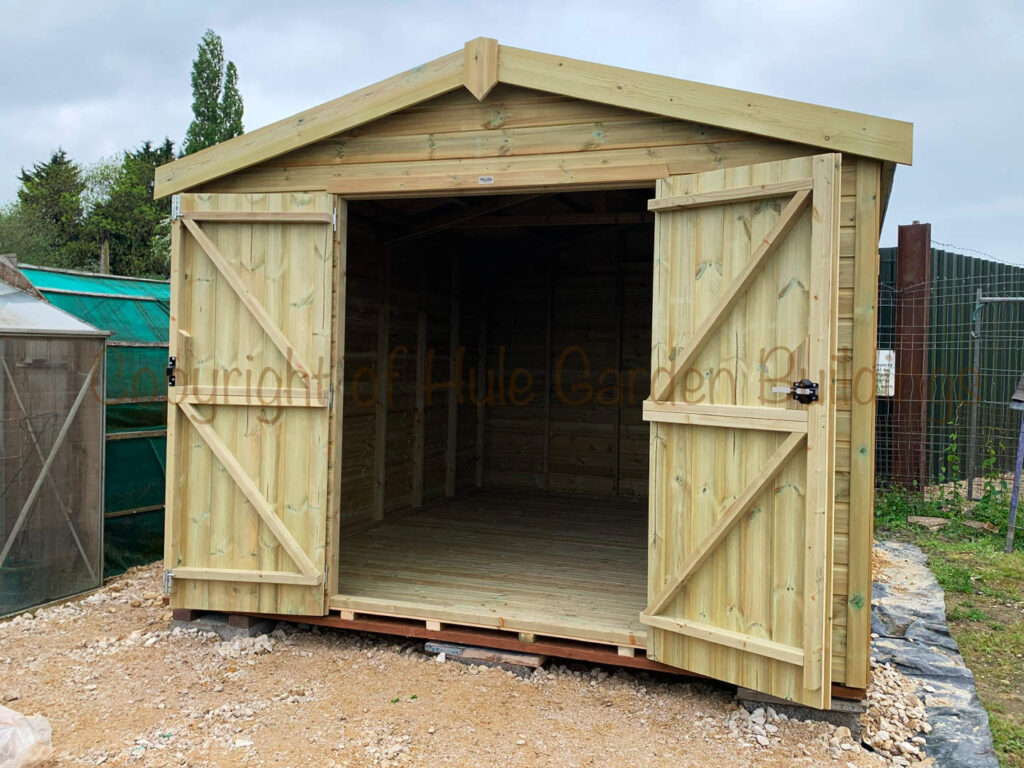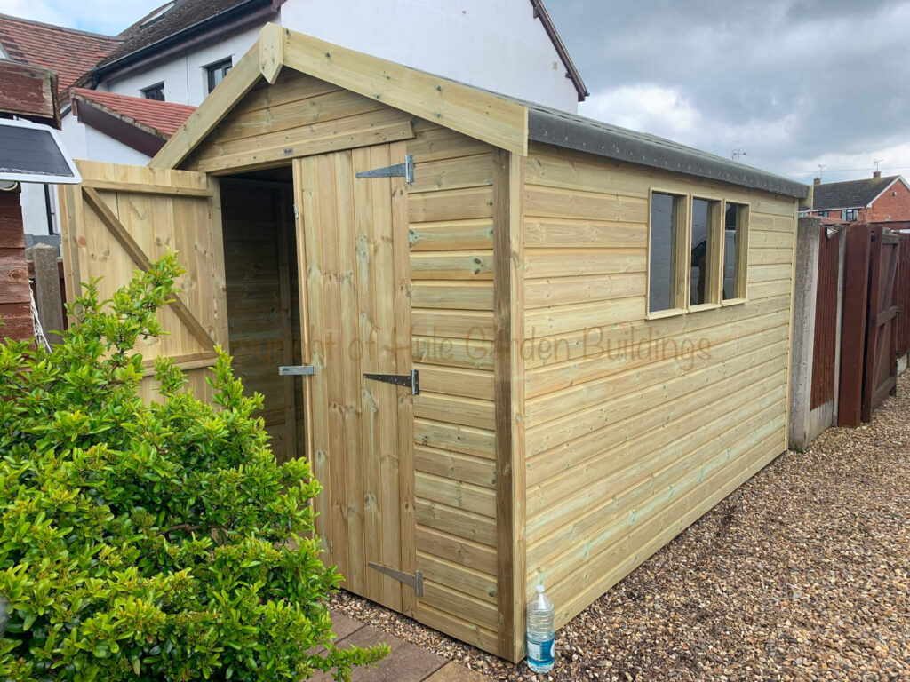 The Hule Garden Buildings premium Apex Workshop. Boasting a durable and heavy duty construction with excellent headroom this high-quality garden workshop is perfect for all your maintenance and storage needs. Made from high quality pressure-treated timber, it is built to last and withstand the elements.