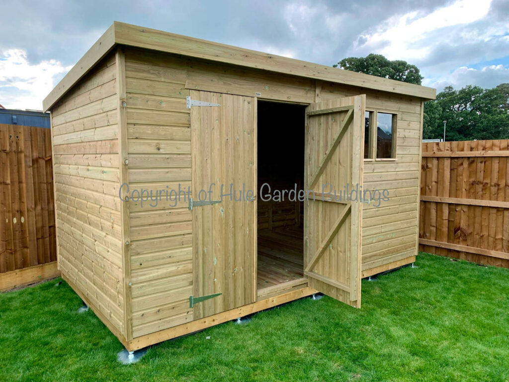 Introducing the impeccable Pent Workshop from Hule Garden Buildings, the perfect addition to any garden or patio. Crafted with high-quality timber and pressure-treated to last. Providing easy access and maximum headroom this workshop is perfect for work benches and storing equipment. With a paintable and stainable finish it has the flexibility to be customised to match any garden aesthetic.